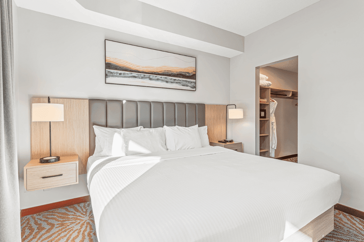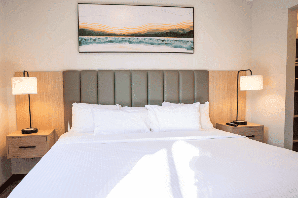 The spacious rooms gave us lots of room to relax. Beds were comfortable. Also liked having a tv in each room. Kitchen had essentials for dishes/pans & salt/pepper/sugar. It was great to be able to give our truck a quick rinse in the parkade. Also appreciated the park pass. It’s a quick walk to nice coffee shops. The unit is in a popular hotel that is starting to show its age, but it is still a great place to stay. It was great for us as 4 adults. I’d recommend this place for a family or for 2couples. The detailed instructions for check-in and parking were excellent. I would’ve liked a extra blanket for each room, but other than that we had all we needed! Thanks for a great stay.