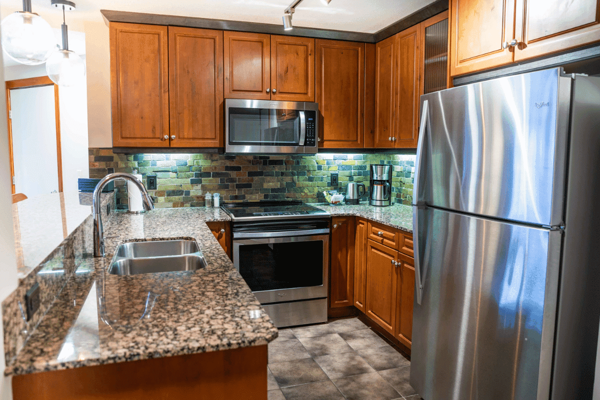 - Fully equipped kitchen with new large appliances and undercounter lighting