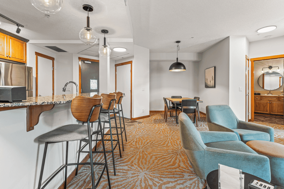 This highly sought after corner suite Hydeaway is located in the popular Blackstone Mountain Lodge and is named after the the beautiful creek running through town and next to the resort. Enjoy stunning panoramic views from your patio or enjoy one of the top outdoor pools and hot tubs Canmore has to offer.